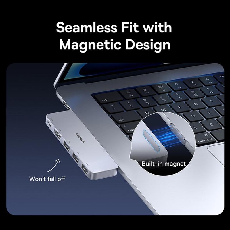 De BASEUS UltraJoy 40Gbps USB-C Multiport Hub biedt alles wat je nodig hebt voor een opgeruimde, goed presterende werkplek. De hoge overdrachtssnelheden, robuuste stroomvoorziening en veelzijdige poortkeuze maken het de ultieme metgezel voor dagelijkse taken of veeleisende creatieve projecten. Het magnetische ontwerp voegt een laagje gemak toe en zorgt voor een stabiele, georganiseerde opstelling waar je ook bent.