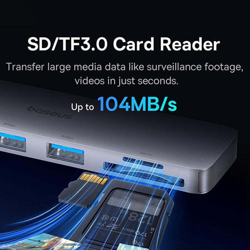 Ervaar naadloze uitbreiding en snelle gegevensoverdracht met de BASEUS UltraJoy Series Cordless Type-C Hub. Ontworpen voor snelle connectiviteit en uitgerust met veelzijdige poorten, waaronder drie USB 3.0-sleuven en dubbele kaartlezers, houdt deze ultradunne hub uw werkruimte efficiënt en opgeruimd. Of je nu 4K beelden streamt of grote mediabestanden verplaatst, de UltraJoy hub zorgt voor topprestaties, waar je ook naartoe gaat.