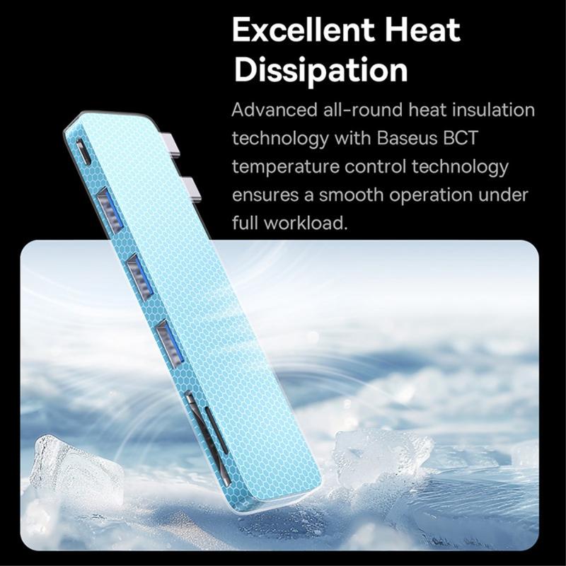 Als u veelzijdigheid en snelheid eist van uw installatie, dan levert de BASEUS UltraJoy Series Cordless Type-C Hub. De robuuste 40Gbps overdrachtssnelheid, 100W voeding, en kaartlezer functionaliteit geschikt voor elk scenario, van snel bestandsbeheer tot streaming op externe schermen. Voeg daar het veilige magnetische ontwerp en de compacte bouw aan toe, en je hebt een hub die topprestaties combineert met maximaal gebruiksgemak.