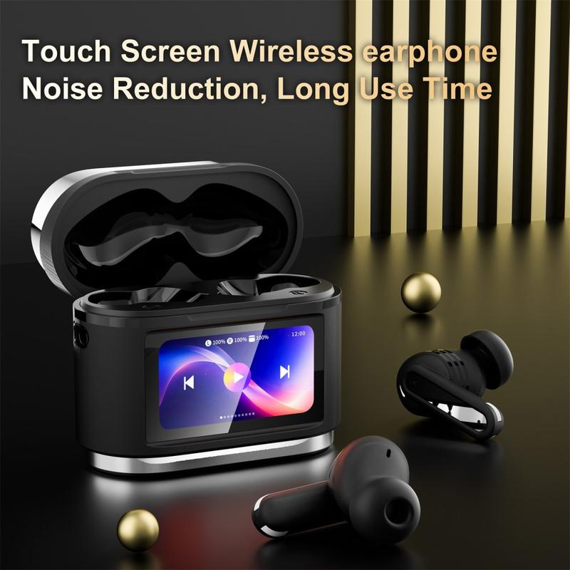• BD2 Smart Digital Display Draadloze Hoofdtelefoon / TWS Oortelefoon met Oplaadetui - Touch Screen, ANC & ENC Noise Cancelling