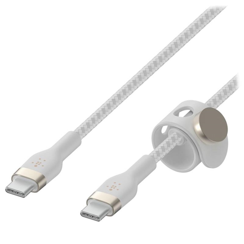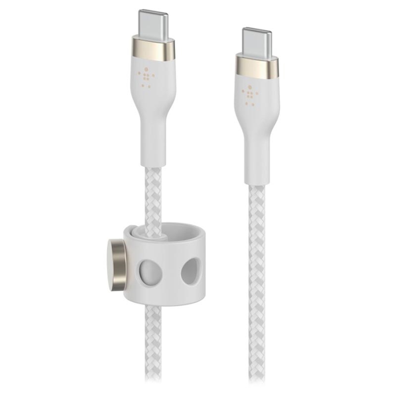 De Belkin BoostCharge Pro Flex is een ultraflexibele en uiterst duurzame kabel die handig is voor het opladen van al uw USB Type-C-apparaten. Het ondersteunt het Power Delivery-snellaadprotocol met een maximale output van 60 W voor supersnel opladen. Deze siliconenkabel heeft een met nylon gevlochten coating en een versterkte aluminium behuizing voor connectoren, waardoor hij niet in de knoop raakt en rafelt. Daarnaast wordt hij geleverd met een magnetische kabelband waarmee je deze oplaadkabel snel en netjes overal kunt bevestigen of opbergen.