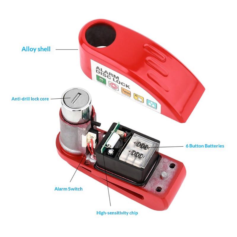 Bengguo hoogwaardige aluminium fietsremschijfslot met 110 dB alarm - antidiefstalslot met 2 sleutels