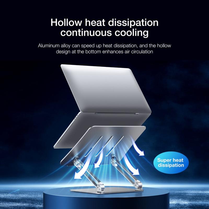 Ventilatie - Gemaakt van een hoogwaardige aluminiumlegering, stabiel genoeg om je laptop te houden, het ontwerp met koelgaten zorgt voor meer luchtstroom om je laptop beter te koelen