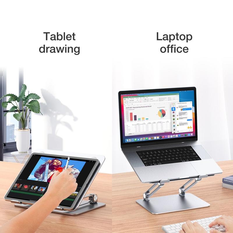 Ergonomisch - De laptopstandaard kan het scherm van je laptop optillen tot een niveau dat geschikt is voor je gezichtsvermogen, zodat je niet over het scherm hoeft te buigen en minder last hebt van nek- en schouderpijn.