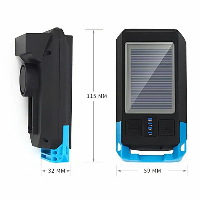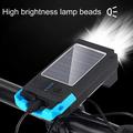 BG-1706 USB+Solar Oplaadbare Fietsverlichting Waterdicht 6 Lichtmodi Fiets Dubbele Koplamp Met Claxon Alarm - Blauw