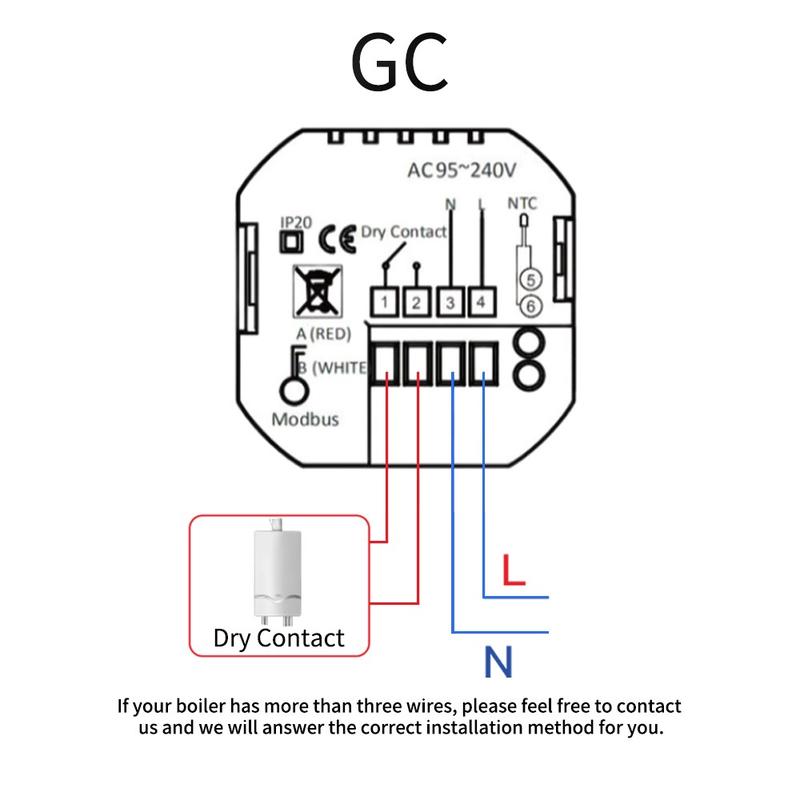 Deze thermostaat is voorzien van een 3,0-inch negatief LCD-scherm waarop de temperatuurwaarden vanuit verschillende hoeken goed te zien zijn. Het capacitieve aanraakscherm zorgt voor een soepele en intuïtieve bediening, waardoor u uw instellingen snel kunt wijzigen zonder ingewikkelde bedieningselementen. De ronde, veelkleurige navigatieknop voegt een stijlvol detail toe en helpt tegelijkertijd de dagelijkse bediening eenvoudig en gebruiksvriendelijk te houden.