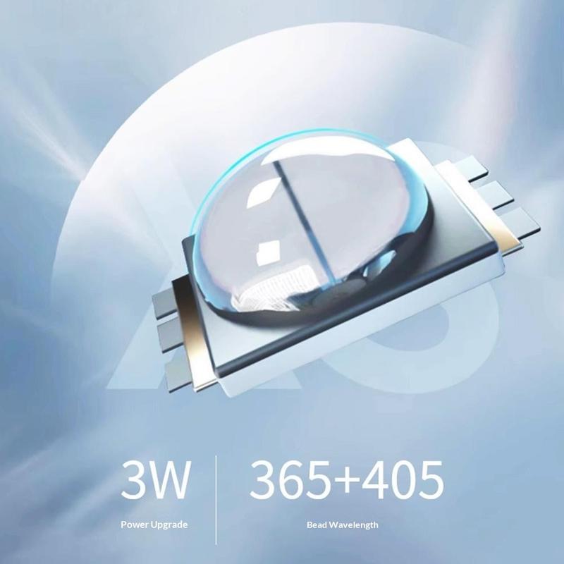 - LED-technologie met dubbele golflengte: 365+405 nm