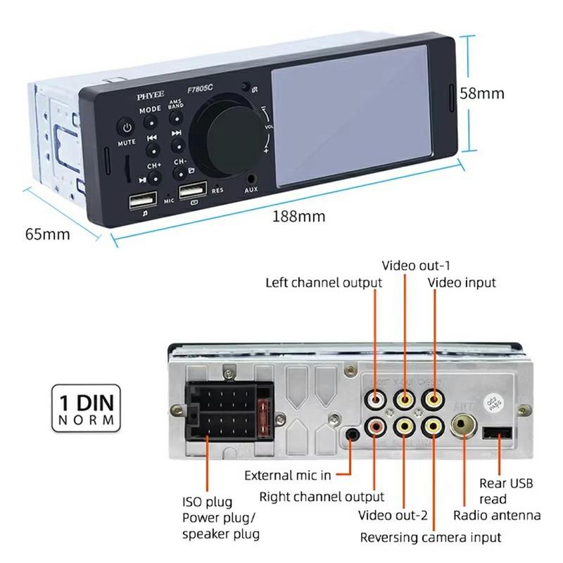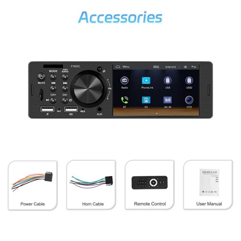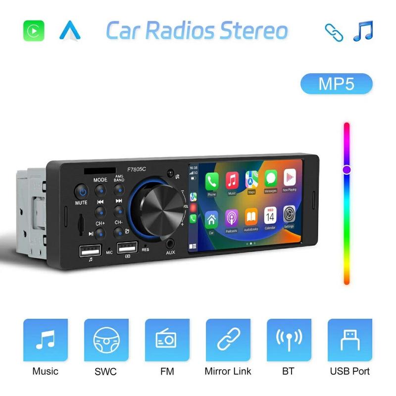 Verander een verouderd dashboard in een smart-phone hub met deze slanke F7805C autoradio. Het capacitieve display van 10,4 cm (4,1 inch) is geschikt voor bedraad CarPlay, Android Auto en Mirror Link, zodat je kaarten kunt volgen, gesprekken kunt aannemen en afspeellijsten kunt streamen zonder met je telefoon te hoeven rommelen. Bluetooth 5.1 houdt gesprekken helder, terwijl je met een 7-kleuren achtergrondverlichting de fabrieksverlichting kunt aanpassen. Ontworpen voor 12 V-systemen en met een gewicht van minder dan 0,4 kg past hij in de meeste single-DIN-sleuven met minimale bedrading.