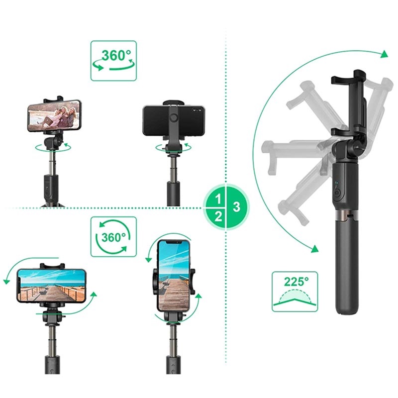Meerdere opnamehoeken? Geen probleem! Met 360° rotatie kunt u eenvoudig de houder of telefoonhouder draaien om vanuit elke hoek foto's te maken.