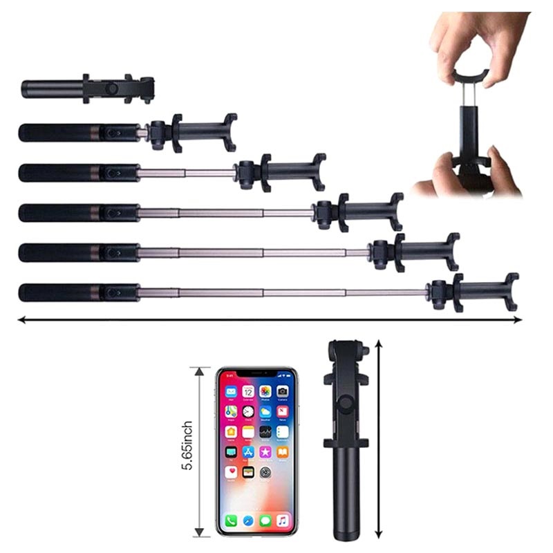 Het handvat van deze selfiestick wordt geleverd met een afneembare Bluetooth-sluiterafstandsbediening en wordt geopend om te transformeren in een handig statief om uw smartphone stabiliteit te geven. Met deze functie kunt u foto's maken van maximaal 10 meter afstand terwijl uw apparaat veilig is gemonteerd en klaar is om foto's te nemen.