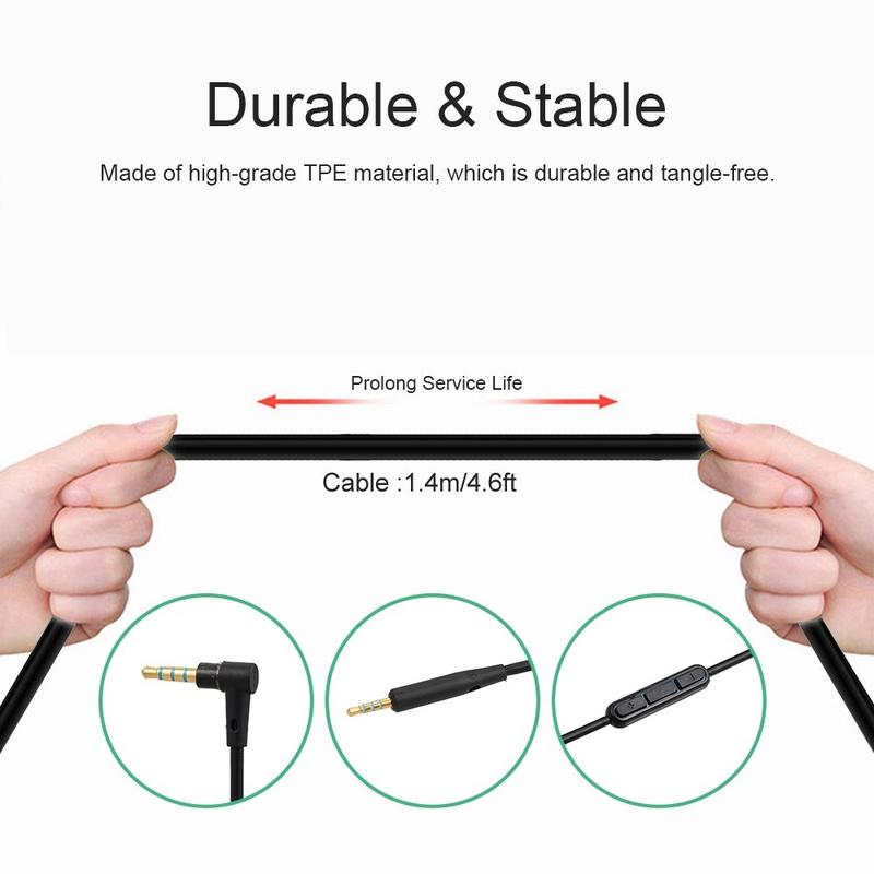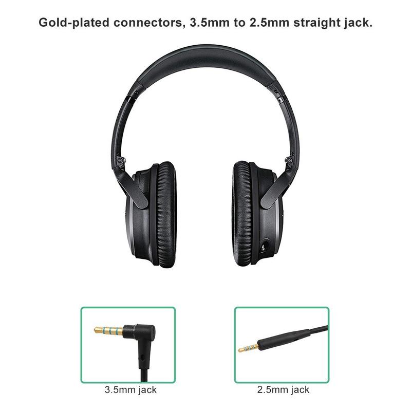 Deze line-control audiokabel is perfect geschikt voor de BOSE QC25 hoofdtelefoon. Vergulde connectoren, 3.5mm naar 2.5mm rechte aansluiting, die duurzaam en stabiel is. Ingebouwde microfoon en volumeregelaar maken het gebruik eenvoudig. Het hoogwaardige TPE-kabelmateriaal verlengt de levensduur en voorkomt verstrikt raken. De kabel heeft ook een superieure geluidskwaliteit en een hoge koudetolerantie. Bovendien is de kabellengte van 140 cm voldoende voor dagelijks gebruik. Dit is zeker een betere metgezel voor uw BOSE QC25 hoofdtelefoon.