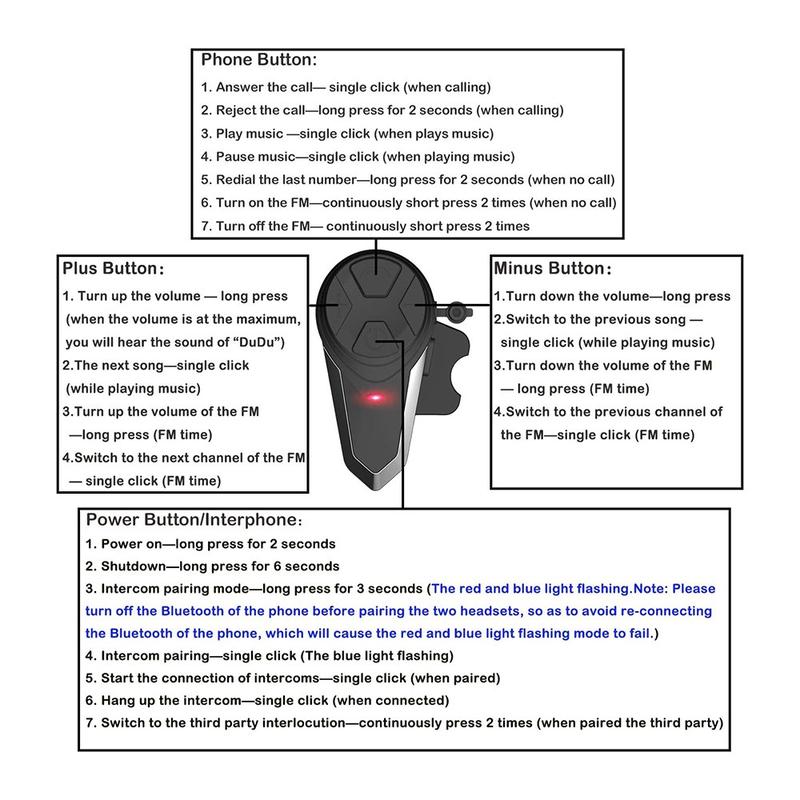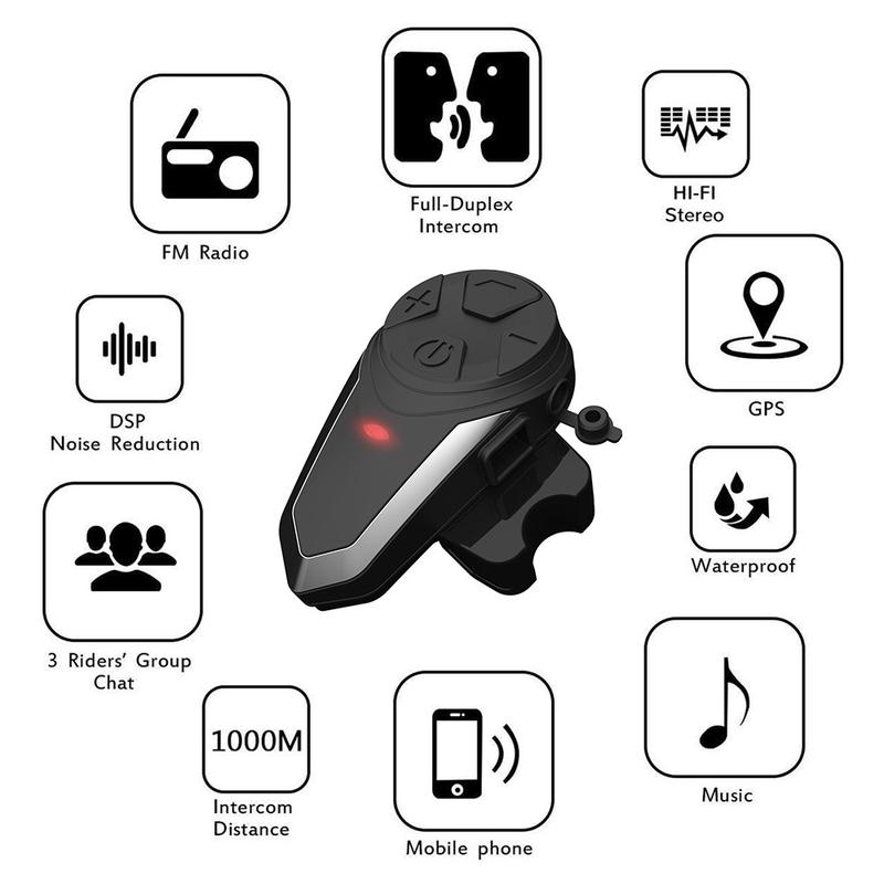 BT-S3 IPX6 Motorfietshelm Bluetooth Intercom - 1000m Bereik, FM Radio & Noise-Cancelling Headset