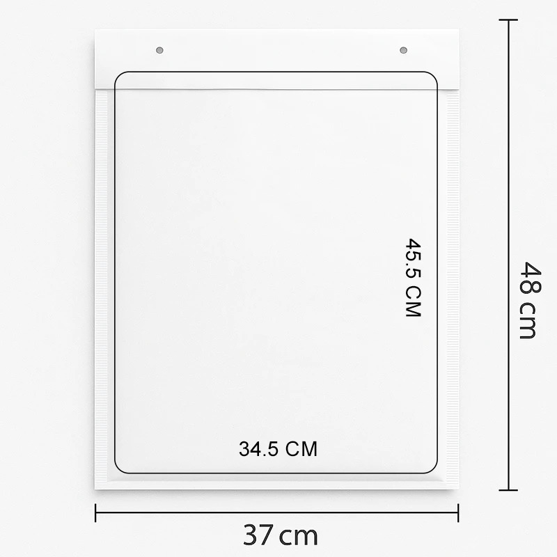 De envelop past in K10 formaat en heeft buitenafmetingen van 370x480mm en binnenafmetingen van 345x455mm.