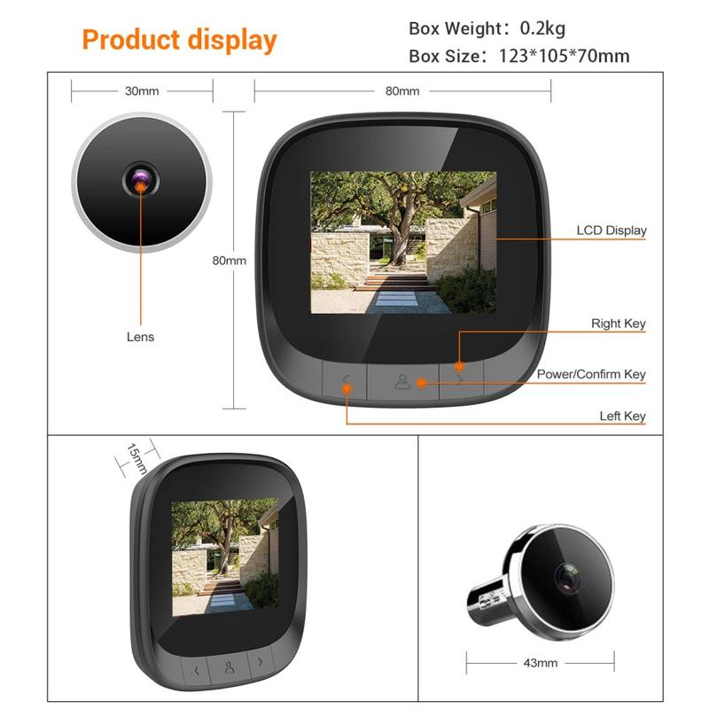 De C16 2,4-inch Smart Door Viewer biedt een high-definition, groothoek kijkoplossing voor thuisbeveiliging. Met een 2,4-inch TFT LCD-scherm, 0,3MP kijkgaatjescamera en ingebouwde foto-opslag kun je bezoekers duidelijk zien en registreren wie er aan je deur komt.