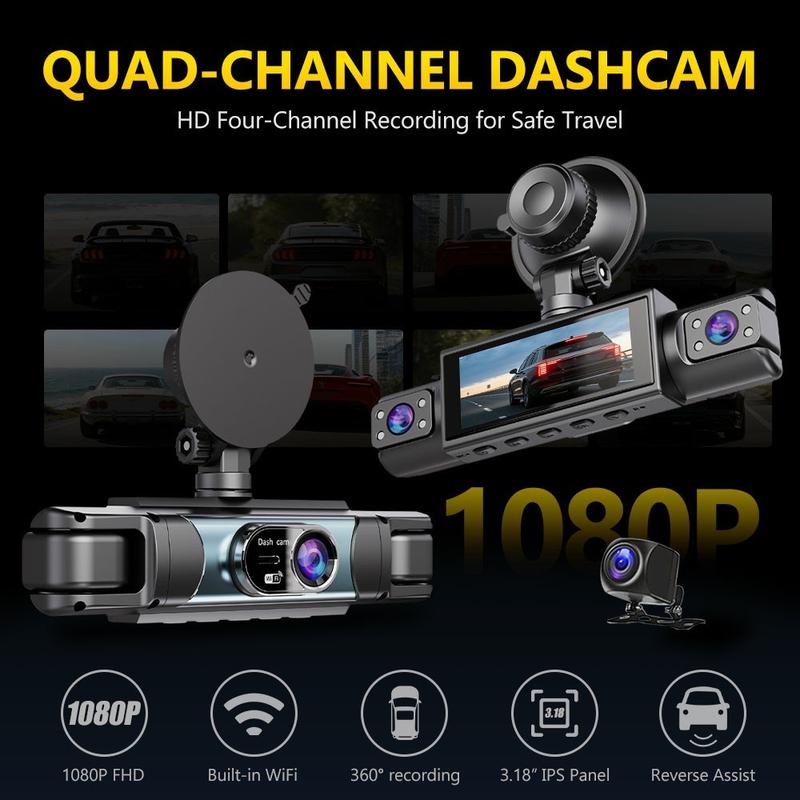 C315 4-kanaals wifi-dashcam - 1080p-autodvr met 360°-beeld, nachtzicht, parkeersensor en achteruitrijcamera