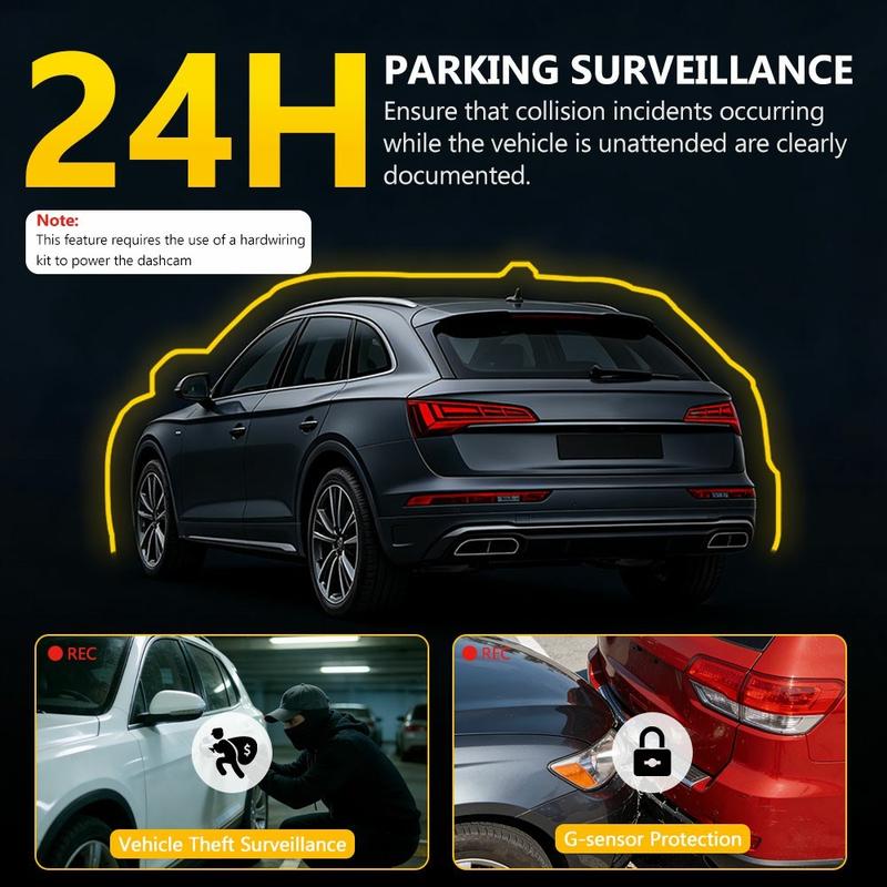 Voor 24-uurs parkeerbewaking heeft de dashcam doorgaans een speciale bedradingsset nodig die op het elektrisch systeem van uw auto wordt aangesloten.