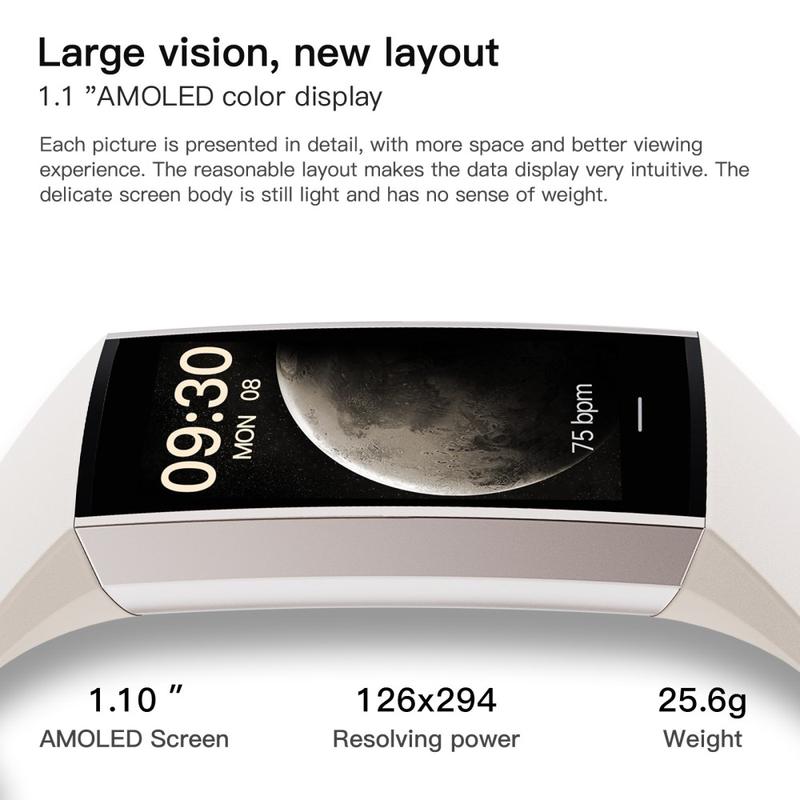 AMOLED-scherm met hoge resolutie: Heeft een 1.1-inch AMOLED-scherm met een resolutie van 126*294, voor heldere en levendige beelden