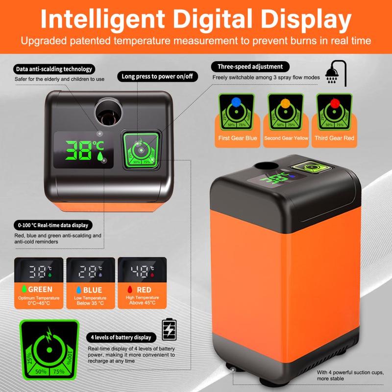 Elektrische Camping Douche met Slimme Temperatuur Controle en 3 Sproeistanden - 7800mAh