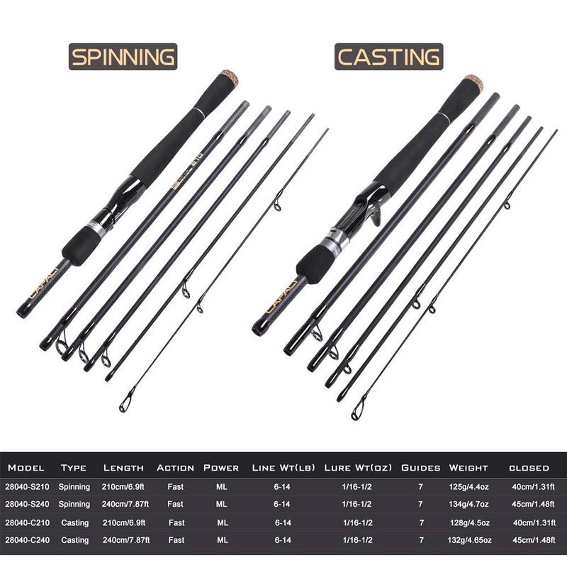 Capici Koolstofvezel Reizen Casting Vishengel 2,1 m - 6-Sectie Lichtgewicht Hand Pole
