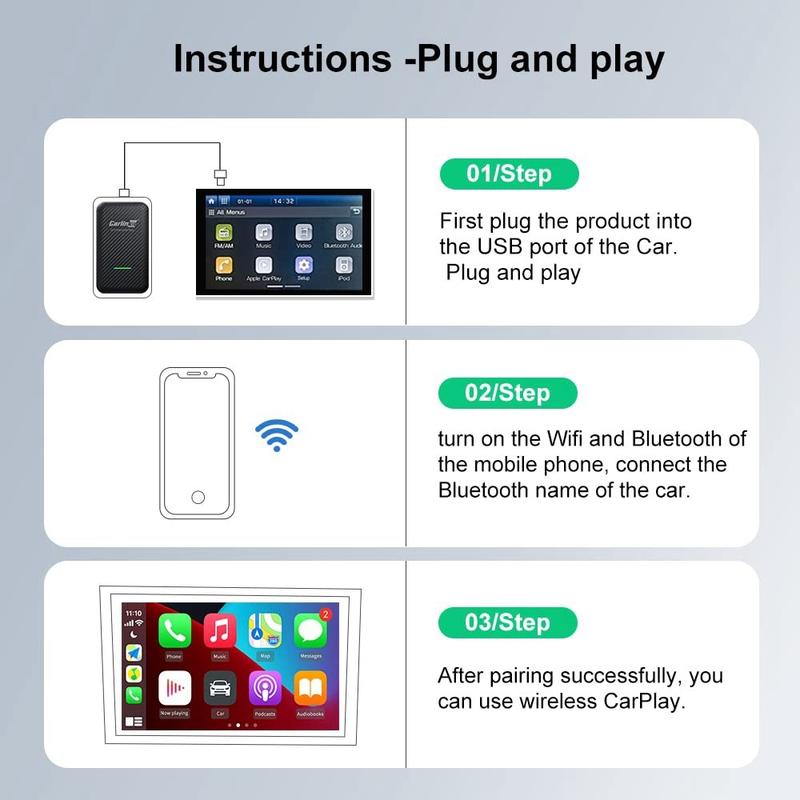 - Plug en Play ontwerp: Upgrade je bestaande bedrade CarPlay-functie naar draadloos zonder demontage of ingewikkelde installatie.