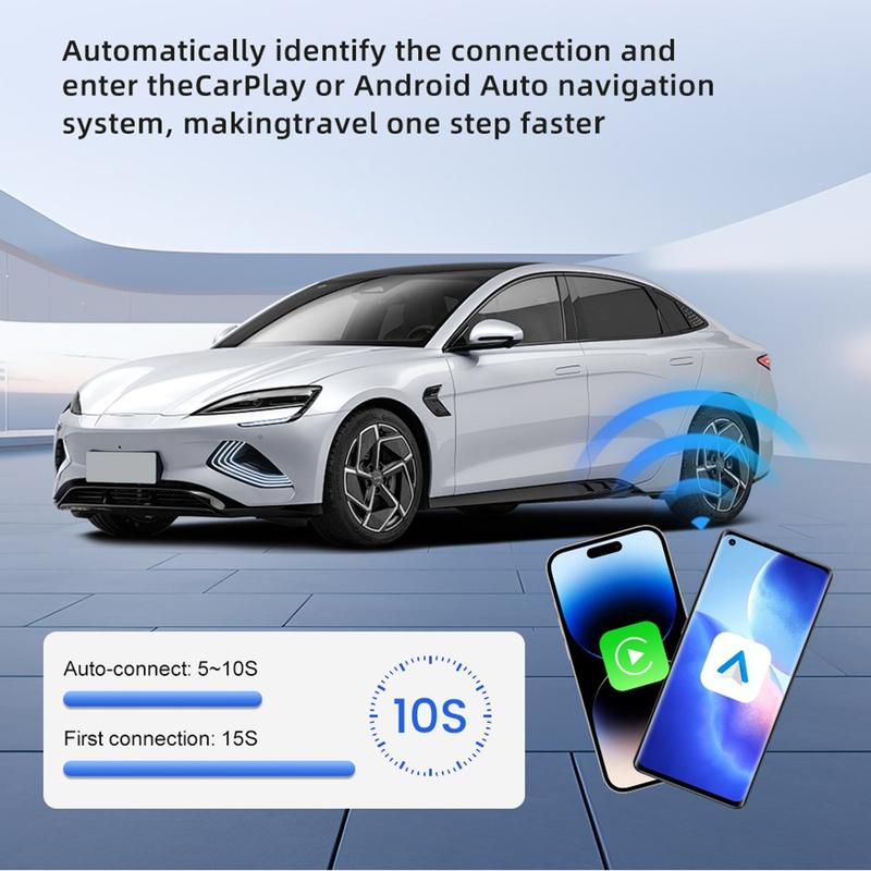 - Draadloze upgrade: Zet de bedrade CarPlay of Android Auto van je auto direct om in een draadloze verbinding.