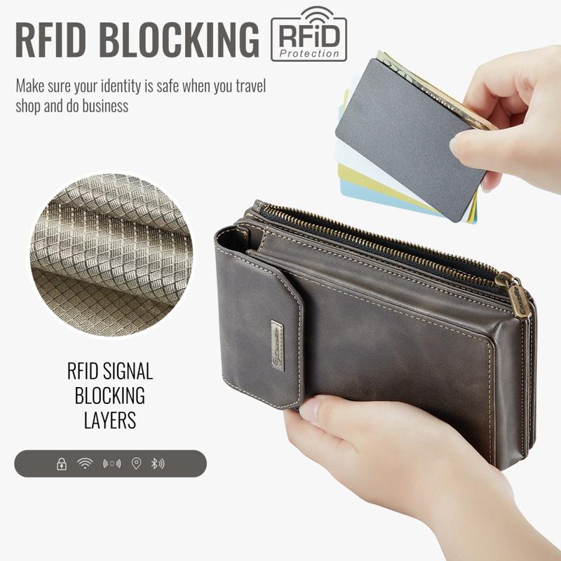 Niet alleen biedt deze schoudertas top-notch veiligheid, maar het heeft ook een slanke verticale lay-out voor gemakkelijke toegang tot je bezittingen. Met 9 kaartsleuven, een rekeningvak, een vak met ritssluiting en een speciale fotohouder is deze tas ontworpen voor ultiem gemak.