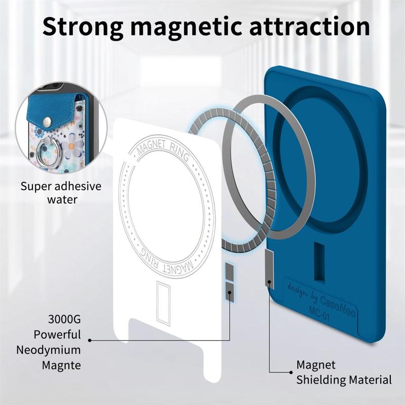 CaseNeo MC-W3 Magnetische Kaarthouder met Ringhouder - Gedessineerde Portemonnee Compatibel met MagSafe