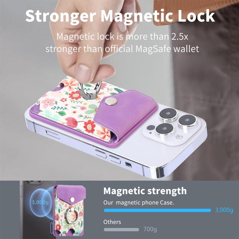 • CaseNeo MC-W3 Magnetische Kaarthouder met Ringhouder - Gedessineerde Portemonnee Compatibel met MagSafe