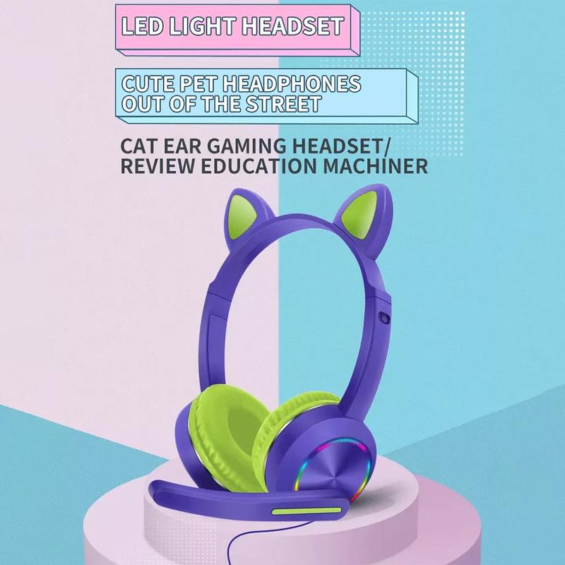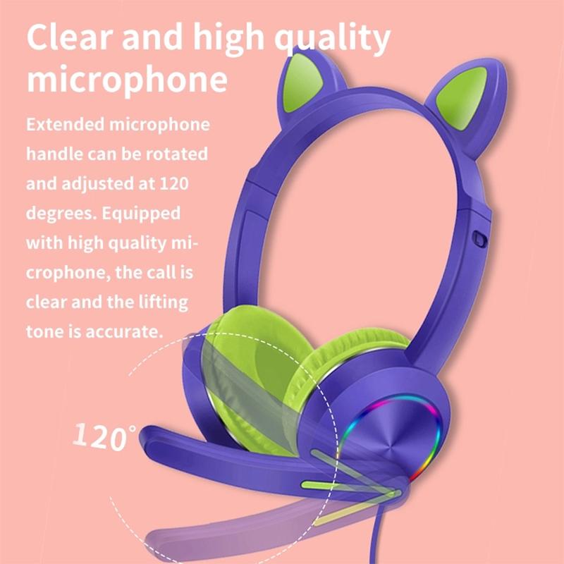 Cat Ears AKZ-020 Bedrade Over-Ear koptelefoon voor kinderen / Gaming Headset met microfoon, LED-lampje - 115dB, 40mm