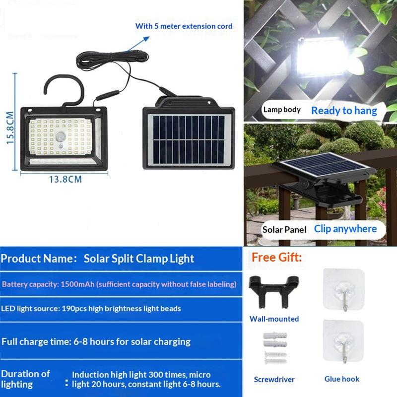 Dankzij het gesplitste ontwerp kunnen het zonnepaneel en de lamp afzonderlijk worden geplaatst, zodat u de lamp kunt plaatsen waar deze het meest nodig is, terwijl het zonnepaneel op de beste locatie blijft voor het opladen. Dit maakt de lamp bijzonder handig in gebieden waar direct zonlicht en de positie van de verlichting niet van nature samenvallen.