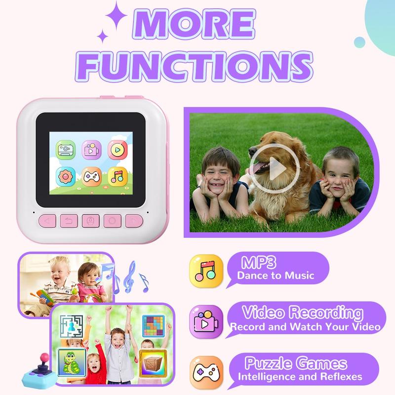 Laat je kind kennismaken met de wereld van fotografie met de CP02 Kids HD Digitale Camera, met een 2,4 inch IPS-scherm en ingebouwde thermische fotoprinter. Uitgerust met een 32GB TF-kaart en kaartlezer, kunnen kinderen met deze camera foto's maken, video's opnemen en hun creaties direct afdrukken. De 1500mAh batterij zorgt voor langdurig gebruik, terwijl de duurzame ABS+siliconen constructie hem veilig en valbestendig maakt. Met leuke functies zoals DIY graffiti, MP3 muziek afspelen en puzzelspelletjes, is het de perfecte gadget voor creatief spel.