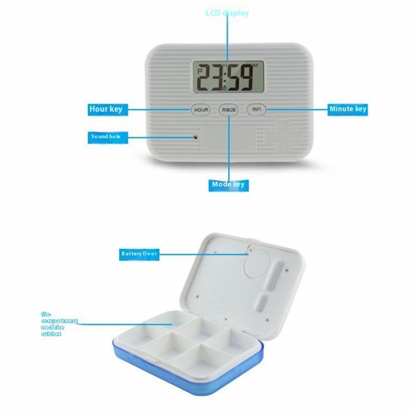 CR-211 Slimme pillendoos met 6 compartimenten en timer - Blauw / Wit