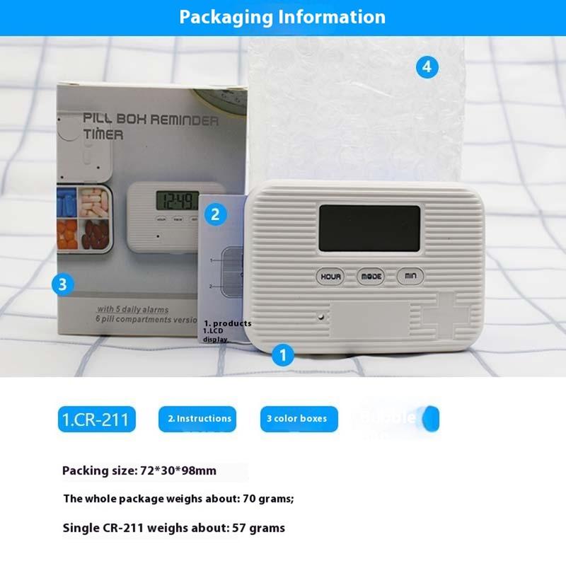 - Met zijn gewicht van 62 g weegt de CR-211 minder dan twee AA-batterijen, maar de zes compartimenten kunnen ongeveer 30 tabletten van gemiddelde grootte bevatten - genoeg voor een volledige week tweemaal daagse therapie.