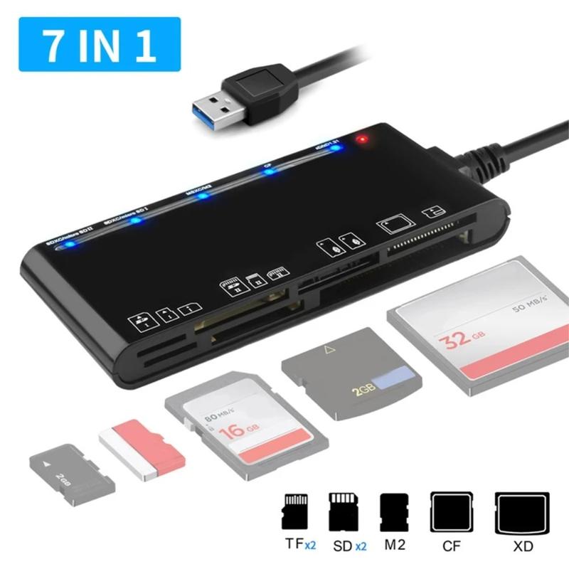 CR7 Multifunctionele USB 3.0-kaartlezer - Snelle gegevensoverdracht voor CF-, SD-, MS-, TF-kaarten - Ondersteuning voor Mac, Windows en Linux