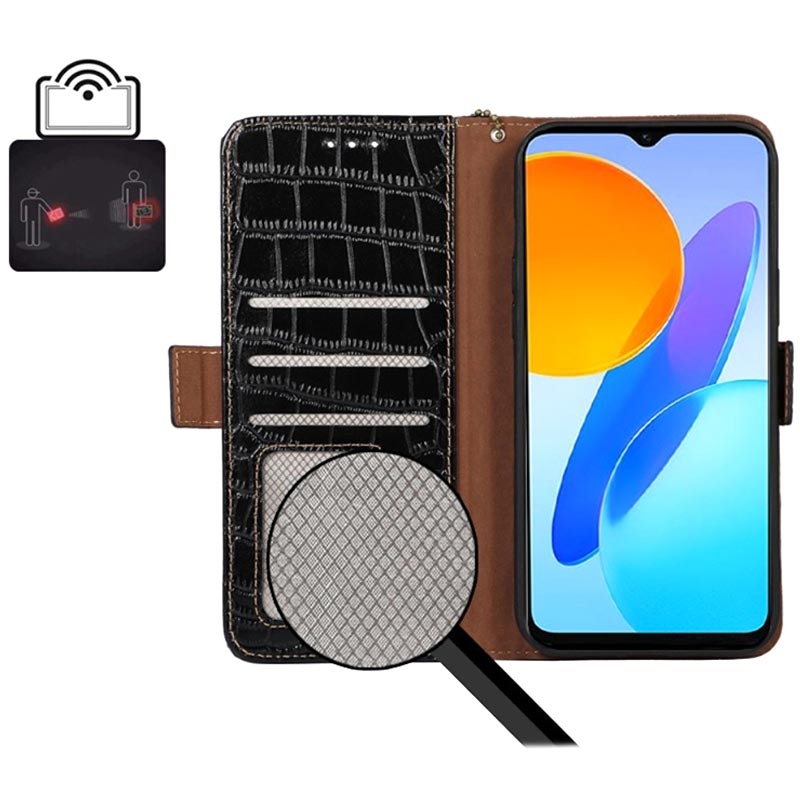 Crocodile Series Honor X8 Wallet Leren Hoesje met RFID - Zwart