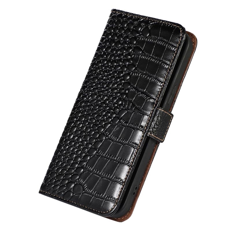 Crocodile Series iPhone 14 Wallet Leren Hoesje met RFID - Zwart