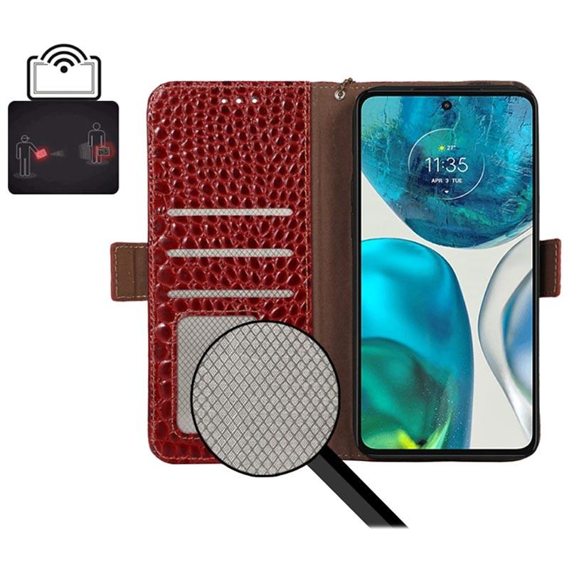Crocodile Series Wallet Leren Hoesje met RFID voor Motorola Moto E22, Moto E22i