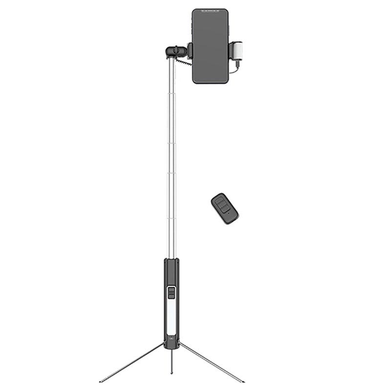 - Multifunctionele selfiestick met statief, invullicht en verwijderbare camerasluiter