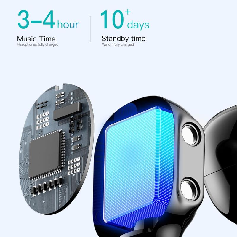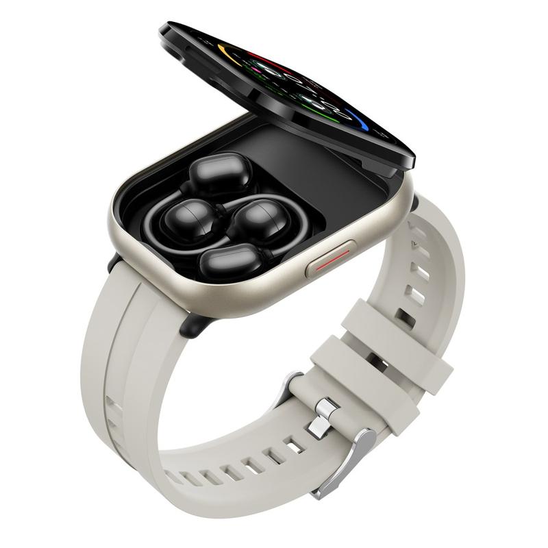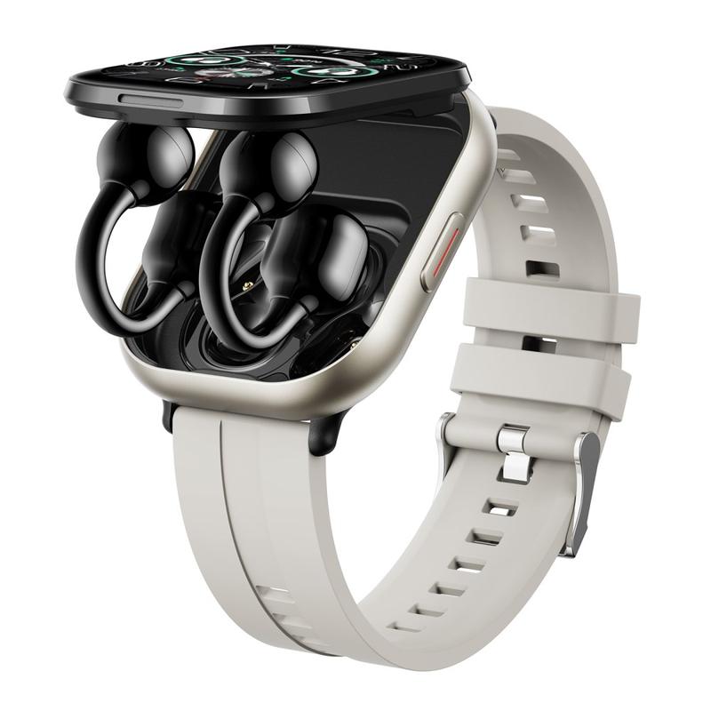 - 2-in-1 slim ontwerp - Combineert een smartwatch en afneembare Bluetooth-oordopjes, waardoor je volledige controle hebt over je fitness, gesprekken en muziek vanaf één apparaat.