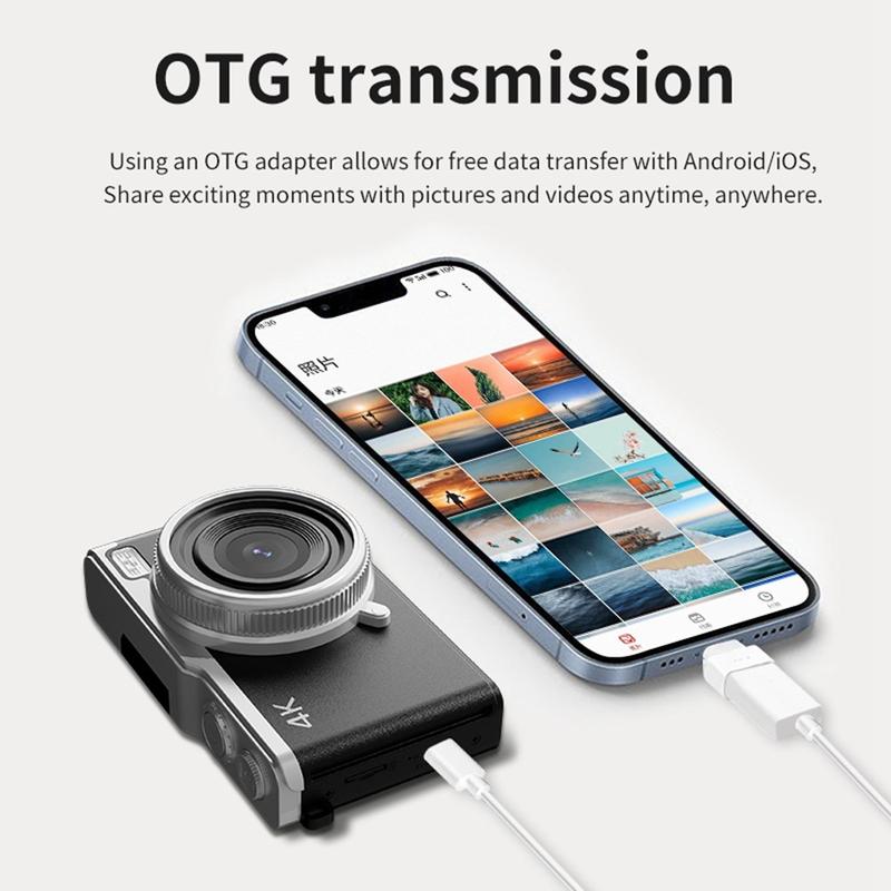 - 2,4-inch 180° kantelbaar scherm - Ideaal voor selfies, vloggen en flexibele opnamehoeken.