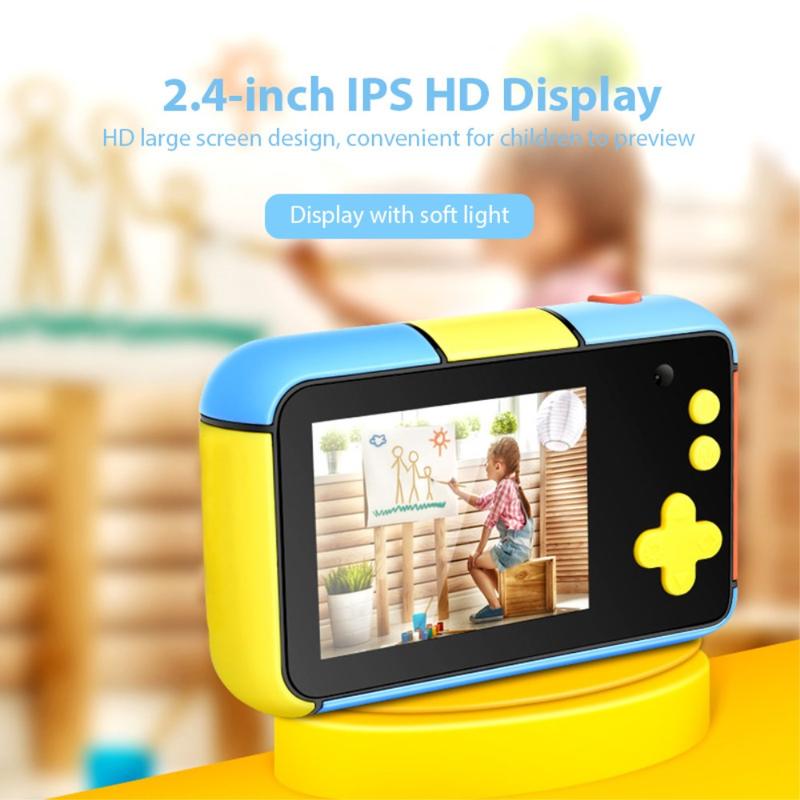 Deze kindercamera is een coole kindercamera met een veelkleurig ontwerp en een scherm van 2,4 inch. Hij is geschikt om de interesse van kinderen voor het maken van foto's te vergroten, hun hersenen te ontwikkelen en ze van buitenactiviteiten te laten houden.