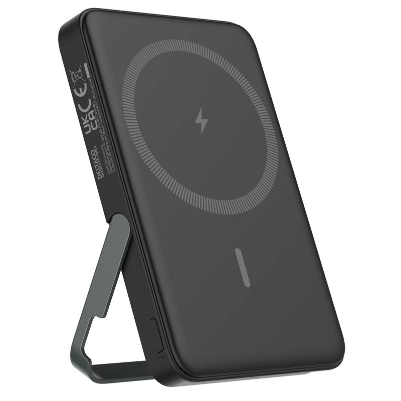Deltaco 5000mAh magnetische draadloze powerbank met standaard - zwart