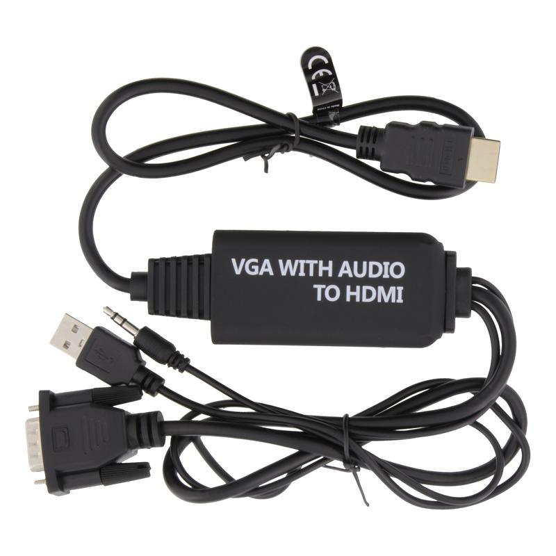 De VGA met audio naar HDMI kabel is de perfecte oplossing om een oudere computer met VGA en audio via 3,5mm aan te sluiten op een moderne monitor, TV of projector met HDMI. Deze kabel wordt gevoed via USB en ondersteunt een maximale resolutie van 1920x1080 bij 60Hz. De kabel heeft mannelijke VGA- en mannelijke 3,5mm-aansluitingen aan de ene kant en een mannelijke HDMI-aansluiting aan de andere kant, zodat je je apparaten eenvoudig kunt aansluiten en kunt genieten van hoogwaardige audio en video.