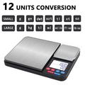 Ervaar professionele nauwkeurigheid en veelzijdigheid met de digitale keukenweegschaal met twee platforms, ontworpen voor zowel zware als delicate metingen. Met twee onafhankelijke weegplateaus - een groot en een microprecisie - is deze weegschaal perfect voor alles van bakingrediënten tot het wegen van sieraden, poeders of kruiden.