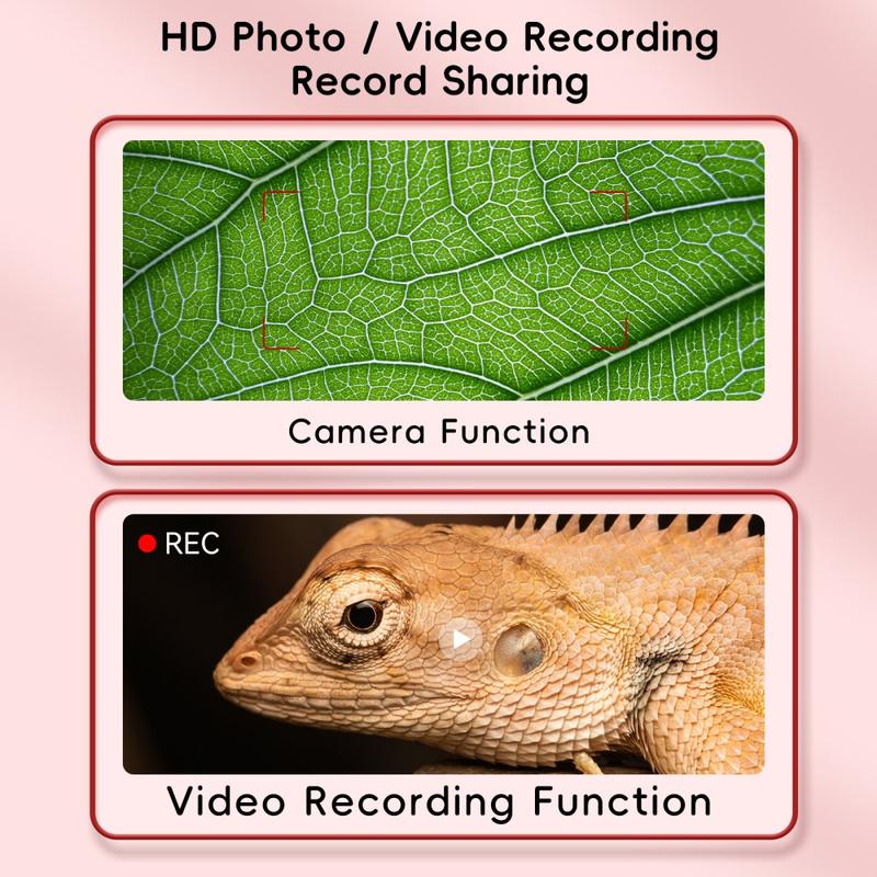 - Hoge-resolutie 2MP camera: Levert scherpe en heldere beelden, waardoor kinderen ingewikkelde details kunnen bekijken met een vergroting tot 1000x.