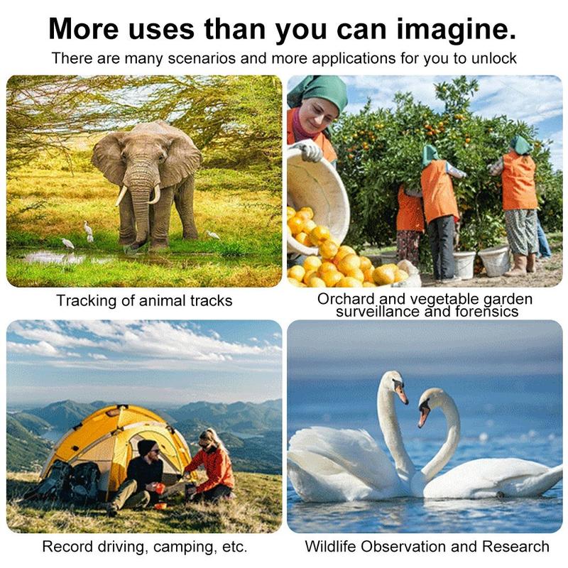 Gebruik de DL006 trailcamera één keer en leg wekenlang haarscherpe beelden van wilde dieren of beveiliging vast zonder de scène te verstoren. Een 16 MP CMOS-sensor neemt 1080 p-video op, terwijl 940 nm infrarood LED's onderwerpen tot 10 m 's nachts verlichten zonder ze te laten schrikken. De IP66-behuizing is bestand tegen regen, stof en temperaturen van -20 °C tot +60 °C, en de snelle 0,2 - 0,6 s trigger plus multi-shot burst zorgen ervoor dat elke beweging wordt opgeslagen op een TF-kaart (tot 32 GB).