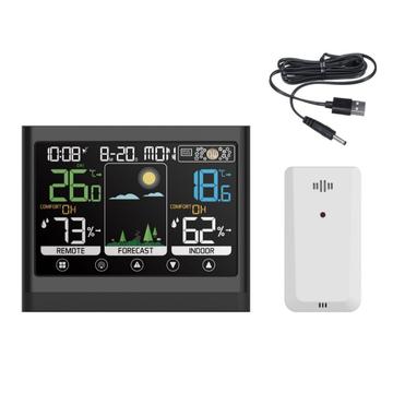 • Draadloos weerstation met kleuren-touchscreen, thermometer, hygrometer en wekker