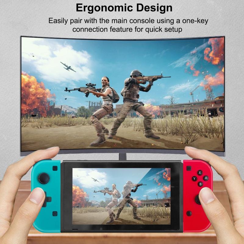 Verbeter je gamingsessies met deze Wireless Bluetooth Joypad, ontworpen voor de Nintendo Switch. Deze links-en-rechts gamepad set biedt naadloze connectiviteit, ergonomisch comfort en responsieve besturing en verbetert draagbare en gedockte gameplay - perfect voor zowel doorgewinterde gamers als nieuwkomers.