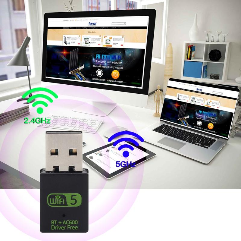 Draadloze USB WiFi Dongle / Bluetooth Adapter voor PC, Laptop - 600Mbps, Dual Band 2.4GHz/5.8GHz, Bluetooth 4.2