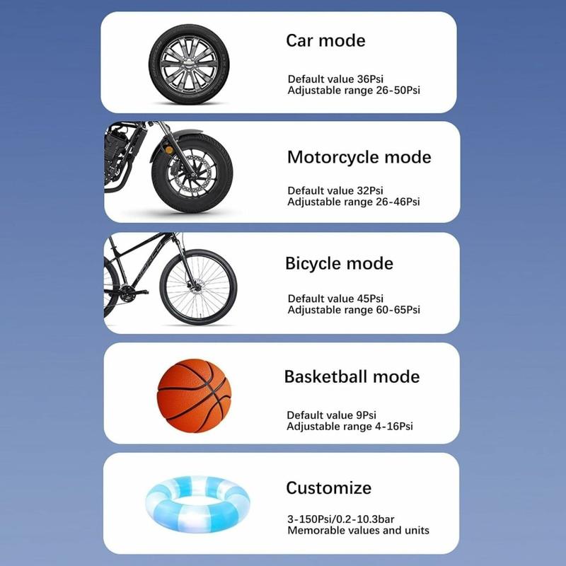 - Hoge druk: Blaas op tot 150 PSI, geschikt voor een groot aantal bandenmaten.